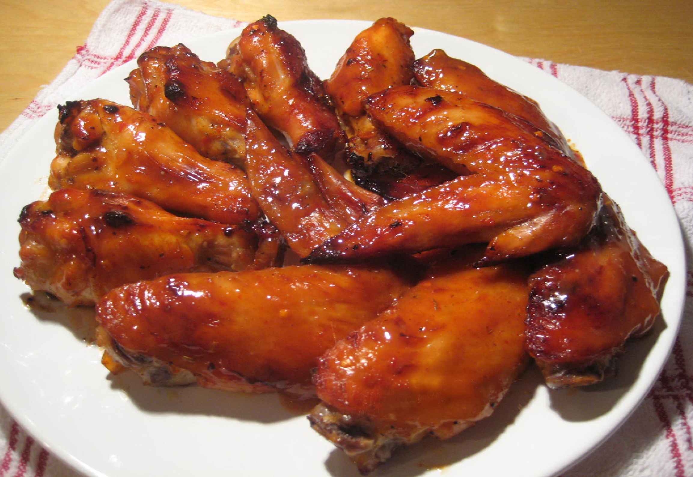 Combine the glaze ingredients in a shallow dish. Add th chicken wings and stir to ensure the meat is thoroughly coated. Leave to marinate in the fridge for